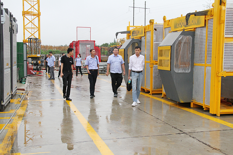 座談會(huì )后,李總帶領(lǐng)中建一局二公司成都分公司領(lǐng)導一行人參觀(guān)了公司塔機和電梯庫存情況。