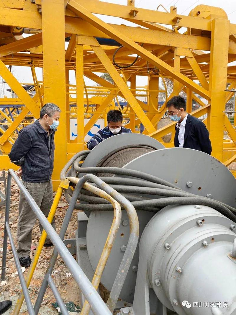 左為成都市高新區安監站領(lǐng)導、中為開(kāi)拓租賃公司李家勛技術(shù)工程師、右為開(kāi)拓租賃公司李總