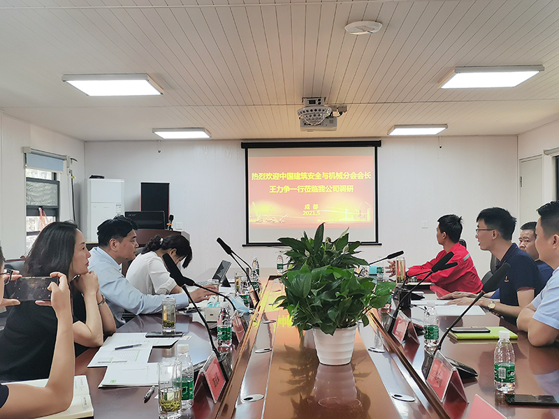 2021年5月9日,中國建筑業(yè)協(xié)會(huì )建筑安全與機械分會(huì )會(huì )長(cháng)王力爭一行蒞臨四川開(kāi)拓建筑機械租賃有限公司參加調研座談會(huì )。