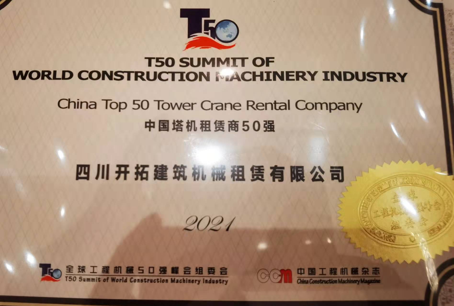 11月22日,以“定義產(chǎn)業(yè),定義未來(lái)”為主題的2021全球工程機械50強峰會(huì )暨中國設備租賃峰會(huì )在上海成功舉辦,四川開(kāi)拓建筑機械租賃有限公司憑借雄厚的設備實(shí)力和優(yōu)質(zhì)服務(wù)榮獲“中國塔機租賃商50強” !